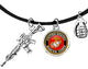 Marine, To The World My Son Is Just A Marine...But To Me That Marine Is My World,, Keep My Son Safe, On A On A Red Leather Antique Bracelet