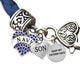 Navy Genuine Austrian Crystal Heart, Mom, Keep My Son Safe, On A Blue Leather Bracelet, Hypoallergenic-Safe, No Nickel, Lead, Or Cadmium